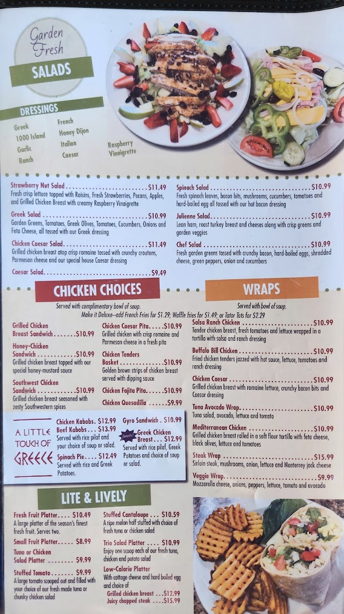 Served with rice pilaf, Greek potatoes and choice of soup or salad.