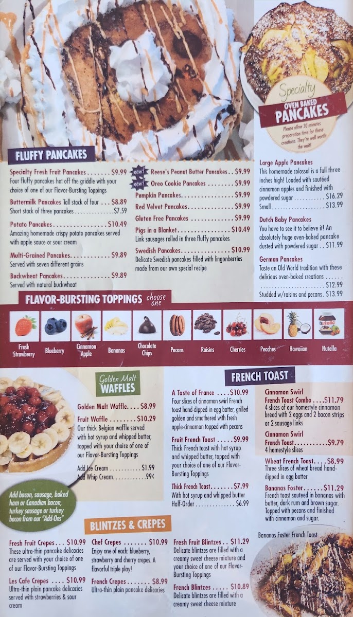 4 fluffy pancakes hot off the griddle with your choice of 1 of our flavor bursting toppings.